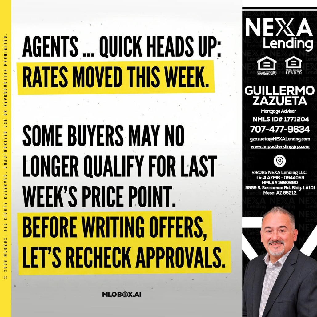 Hi, my name is Guillermo Zazueta. I’m a Loan Officer with NEXA Lending LLC., offering personalized mortgage solutions, fast customized quotes, great rates and service with integrity.