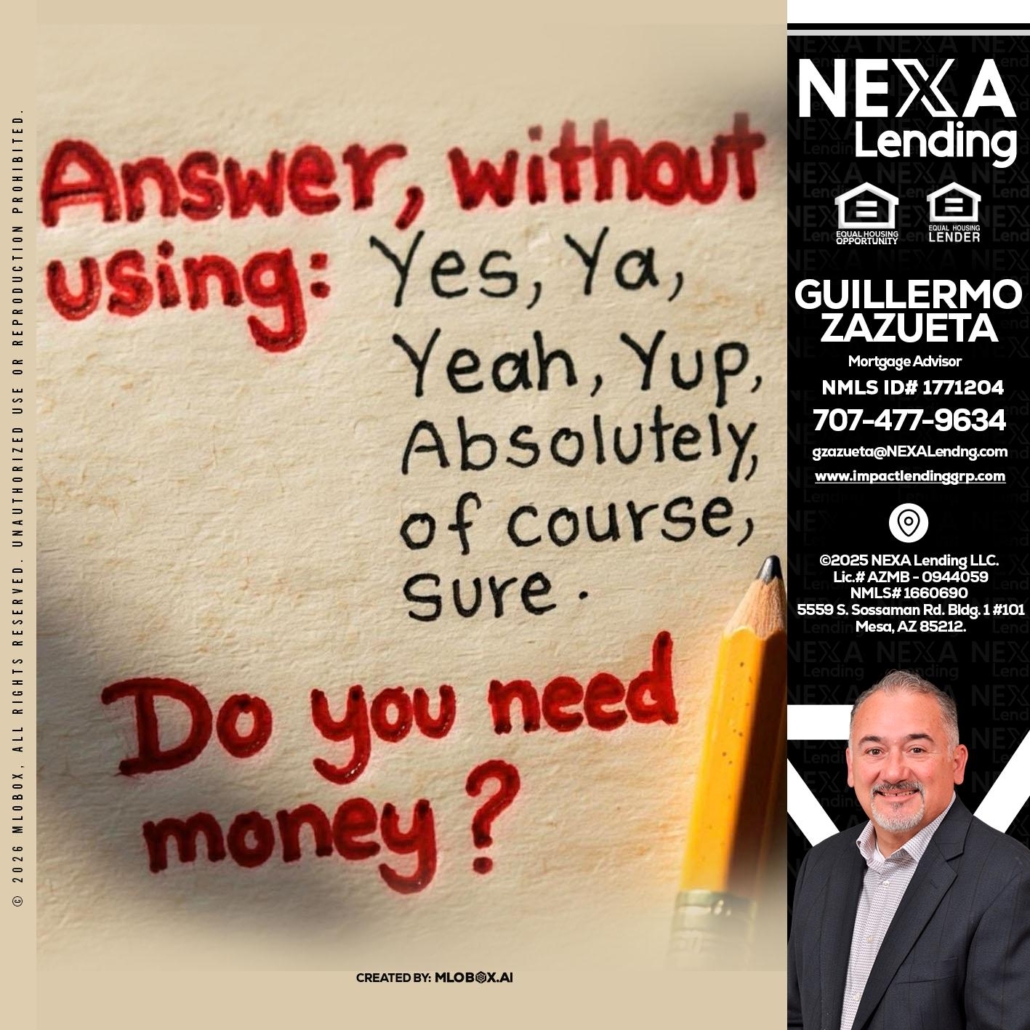 Hi, my name is Guillermo Zazueta. I’m a Loan Officer with NEXA Lending LLC., offering personalized mortgage solutions, fast customized quotes, great rates and service with integrity.