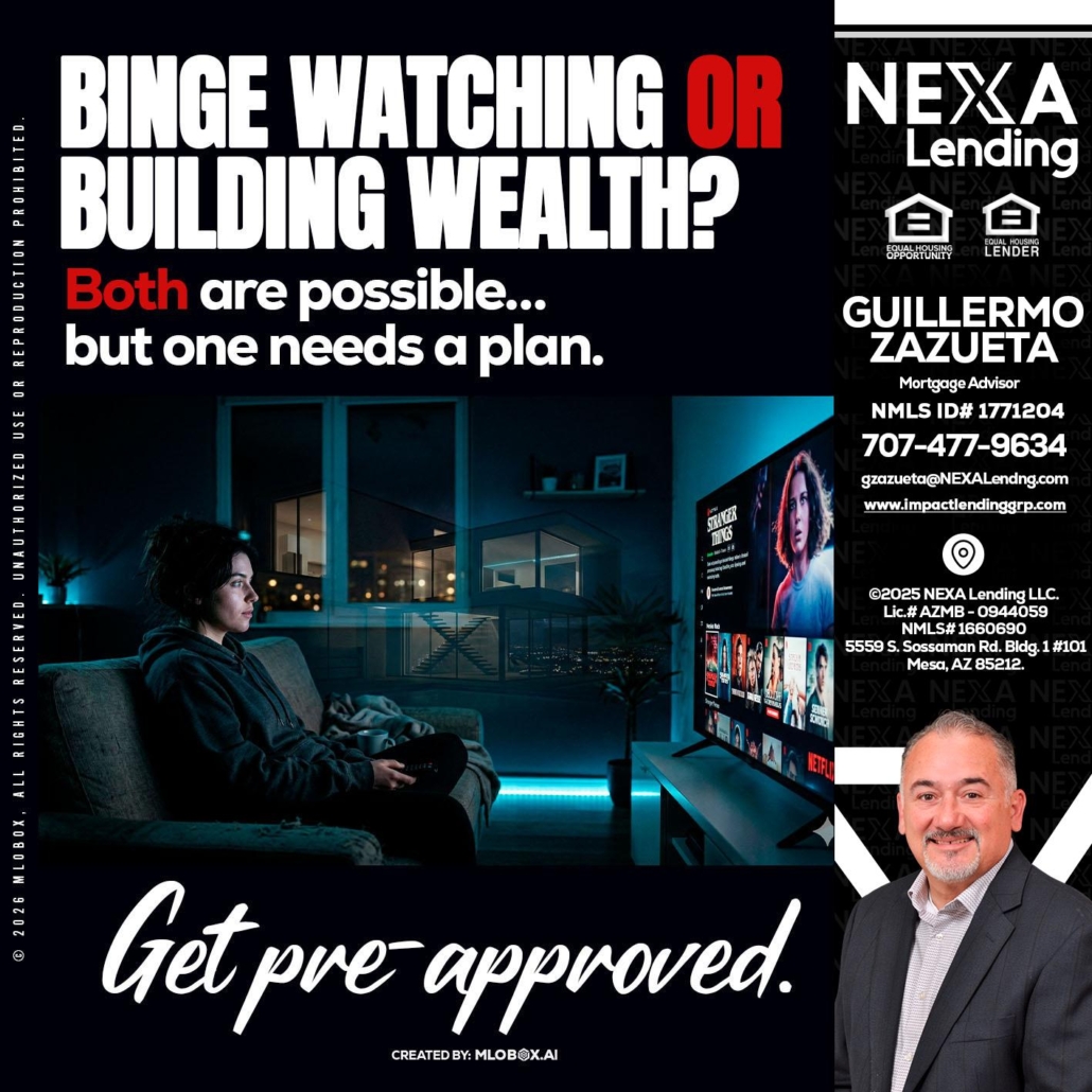 Hi, my name is Guillermo Zazueta. I’m a Loan Officer with NEXA Lending LLC., offering personalized mortgage solutions, fast customized quotes, great rates and service with integrity.
