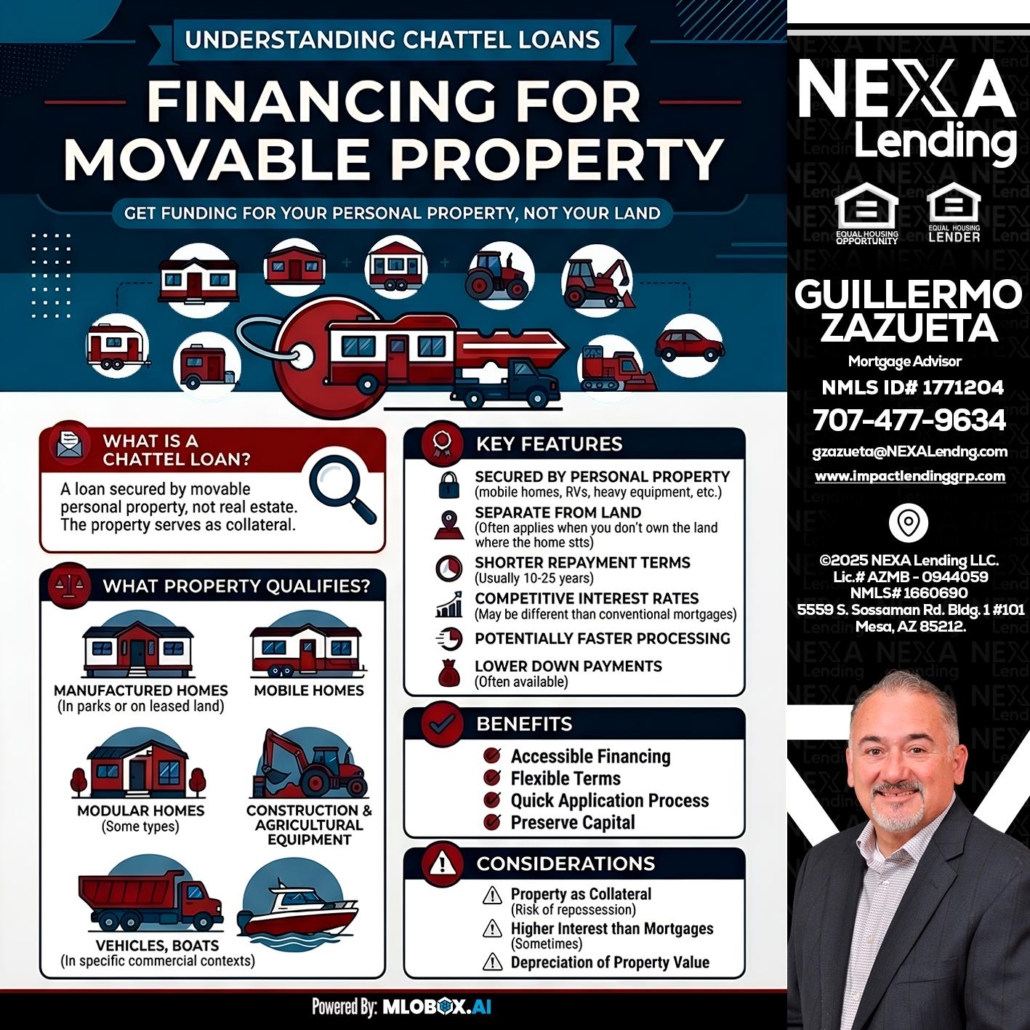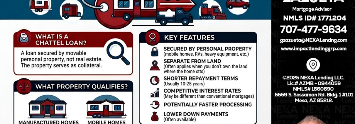 Hi, my name is Guillermo Zazueta. I’m a Loan Officer offering personalized mortgage solutions, fast customized quotes, great rates and service with integrity. If you’re interested in learning more about the Chattel loan or any other, just let me know and I’ll walk you through your options.