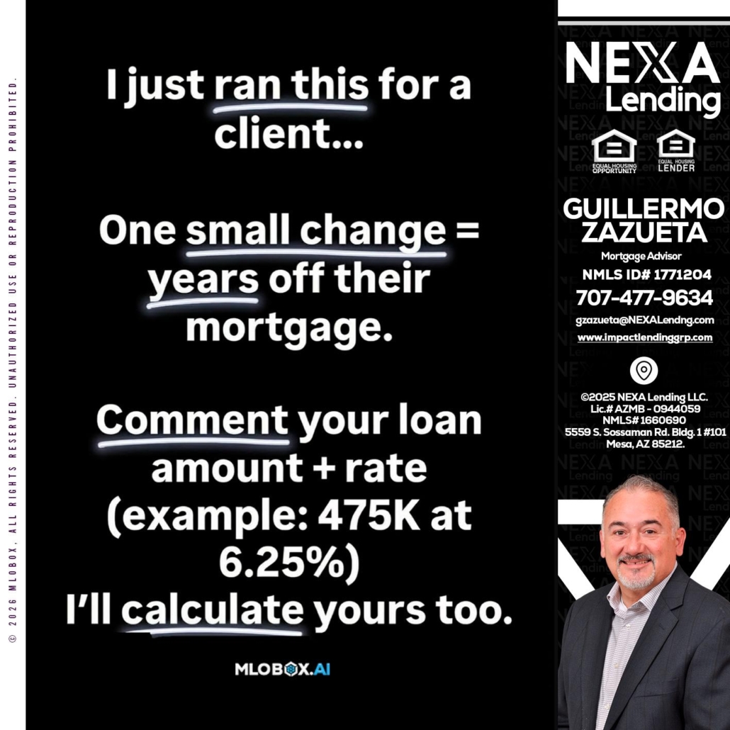 Hi, my name is Guillermo Zazueta. I’m a Loan Officer with NEXA Lending LLC., offering personalized mortgage solutions, fast customized quotes, great rates and service with integrity.