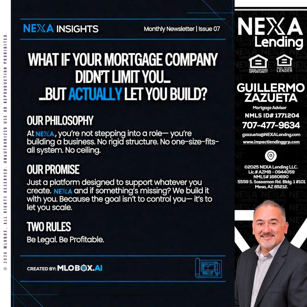 Hi, my name is Guillermo Zazueta. I’m a Loan Officer with NEXA Lending LLC., offering personalized mortgage solutions, fast customized quotes, great rates and service with integrity.