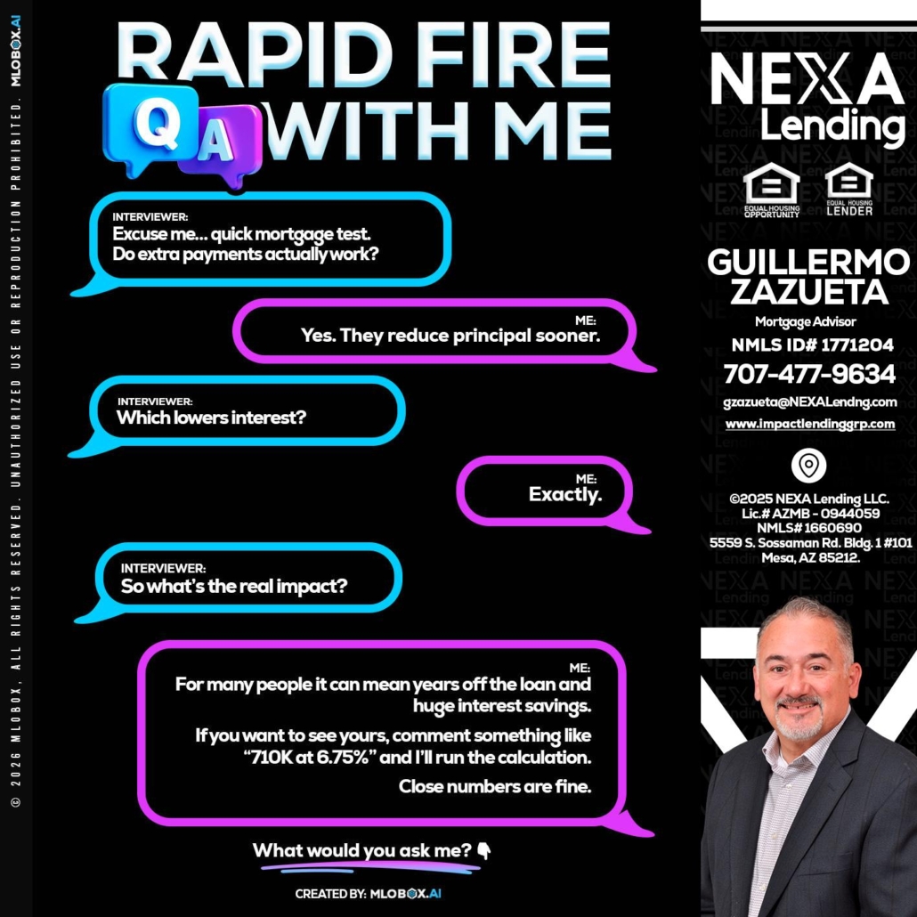 Hi, my name is Guillermo Zazueta. I’m a Loan Officer with NEXA Lending LLC., offering personalized mortgage solutions, fast customized quotes, great rates and service with integrity.